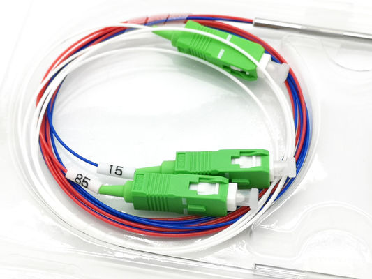 SC APC ألياف ضوئية 1 * 2 FBT مقبل 15٪: 85٪ اللون الأحمر الأزرق لـ WDM T1550 R1310/1490 FWDM