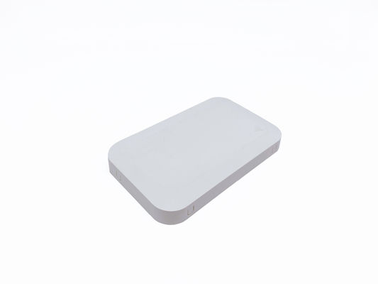 الصندوق من البلاستيك الأبيض ، مع علامة ليزر على الغطاء لتذكير عامل التركيب.