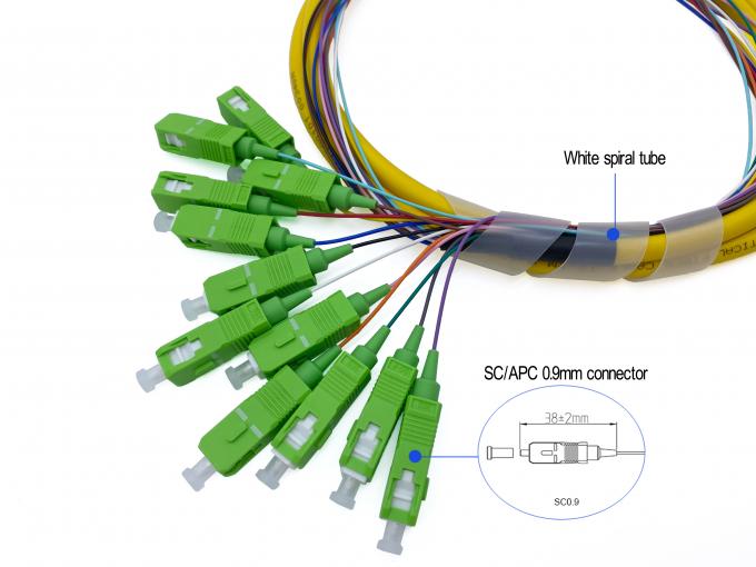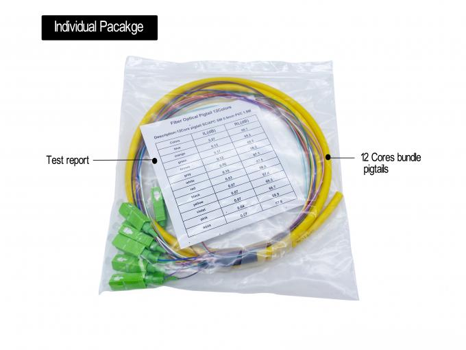 12 نواة FTTH من الألياف البصرية ضفيرة SC APC G652D PVC 900um 1.5Mts أصفر 4
