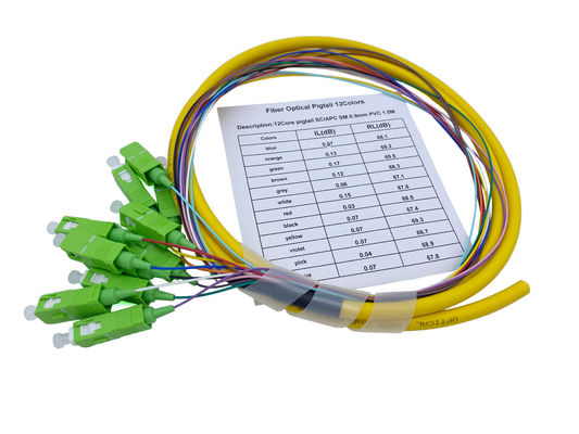 12 نواة FTTH من الألياف البصرية ضفيرة SC APC G652D PVC 900um 1.5Mts أصفر