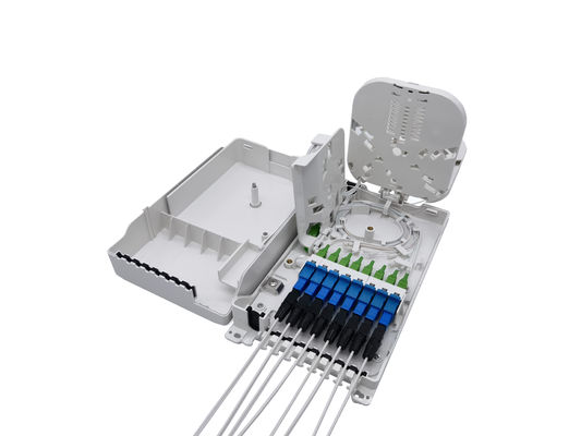 صندوق إنهاء الألياف البصرية ABS البلاستيك 8 منافذ تقطيع الألياف البصرية الفاصل 1x8.5