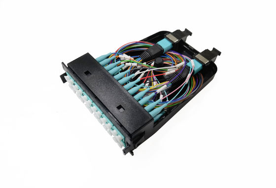 12 24 ألياف MTP MPO Fibra Optica Modular Cassette Plastic OM3 10G Aqua Male Guide Pin
