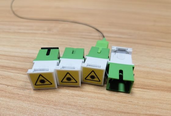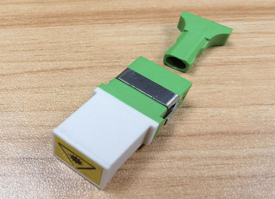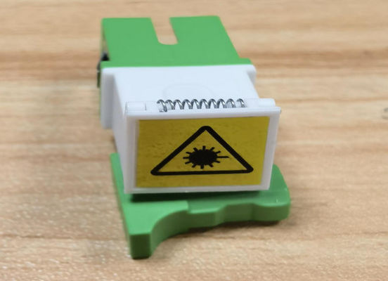 محول مصراع أمامي SC / APC مع علامة ليزر ، نصف أبيض ونصف أخضر ، غطاء غبار أخضر وضع واحد ، غطاء سيراميك