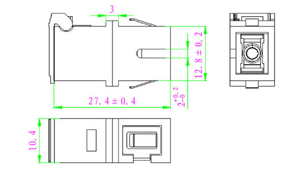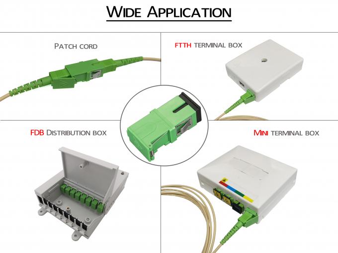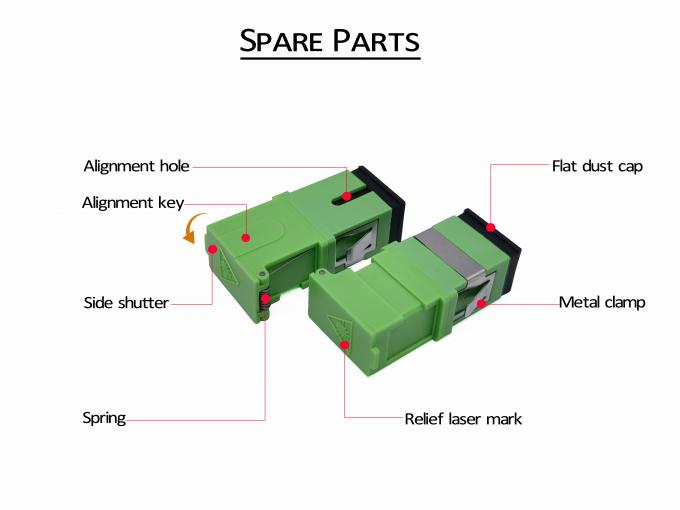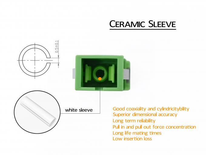 محول المفتاح الأمامي SC/APC مع علامة الليزر، نصف أبيض نصف أخضر، غطاء غبار أخضر وضع واحد، غطاء السيراميك
