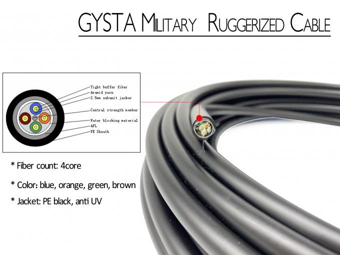 4 كور النحاس الألومنيوم للماء أسلاك التوصيل المصنوعة من الألياف البصرية SC FC APC 9.8mm الكابلات العسكرية Ruggerized PE