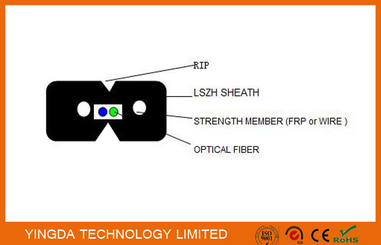 كابل FTTH داخلي للقطرة كابل توزيع الألياف البصرية FRP الفولاذ G657A2 LSZH
