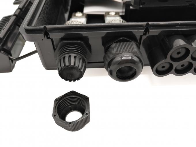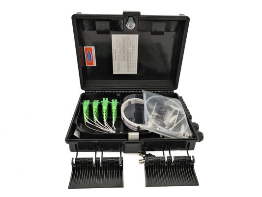 FTTH IP65 16 منافذ 2pcs 1x8 ألياف ضوئية مربع القسمة الجوية القطب الجدار تركيب الأسود