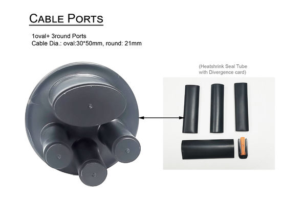 إغلاق الألياف الضوئية هو نوع القبة المصغرة ، 1 Oval 3round ports لمعظم التطبيقات. القطر كبير جدًا ، والمنفذ البيضاوي هو 30 * 50mm ، ويمكن أن يقوم المنفذ المستدير بحد أقصى 21mm.جميع الموانئ ذات الأنابيب المتقلصة الحرارية عند التسليم.