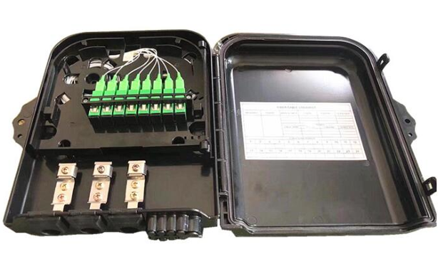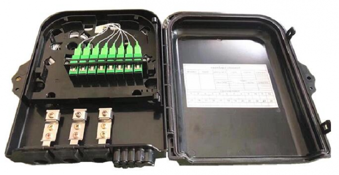 8 منفذ مربع توزيع الألياف الخارجية الصلبة صعود القطب الأبيض مع منافذ الكابلات انخفاض، يمكن تثبيت 1X8 Splitter SC/APC محول